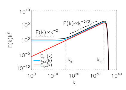 In the large scales where the symmetries are not broken, we expect a k−2 energy spectrum, while small scales recover the k−5/3 spectrum.